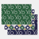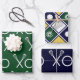 Creative lacrosse gift wrap featuring lax sticks and balls on green and navy blue backgrounds with gold accents for player, coach and team sports fans.
