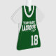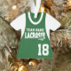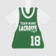 Green and white lacrosse team sports jersey with custom photo, team name and number.