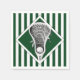 Creative lacrosse team party or sports event napkins featuring cool lax stick art on green background.