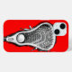 Cool lacrosse themed phone case featuring lax stick illustration on red background.