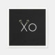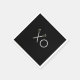 Creative lacrosse party or event napkins for team player, coach or sports fans who love game day, senior night or birthday party featuring lax sticks xoxo hugs and kisses on black background.
