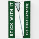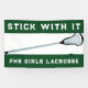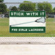 Girls lacrosse team banner featuring motivation quote and lax stick design on green background. Edit text to customise for your lacrosse party or team event, game day banner, school senior night or team tryouts.
