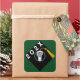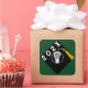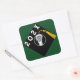 Cool lacrosse senior night stickers or graduation party favour labels featuring lax stick and ball on a black graduation cap with a gold tassel. Edit text to add year.