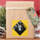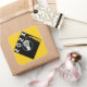 Cool lacrosse senior night or graduation party stickers for senior player, featuring lax stick and ball on black graduation cap with a gold tassel. Edit text to add year.
