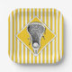 Lacrosse sports party design featuring a lax stick on a yellow gold background.