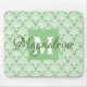 Lacy Damask Feminine Green & White Monogram & Name Mouse Mat