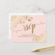 Lacy Gold Calligraphy Blush Pink Wedding RSVP Postcard