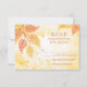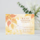 Pretty (gold / orange / yellow) lacy style leaves with a dappled light watercolor feel background. Great for an outdoor wedding event. Easy to customise with your own text. Other colours available.This rsvp card can be changed to a reception / direction card (just replace the text with your directions) Please see my store for matching items. Original Illustration by pj_design.