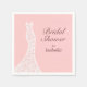 A romantic lace wedding dress accents this bridal shower napkin on a delicate pink background. Scroll down to see coordinating items in the collection.