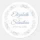 Lacy Silver Filigree Elegant Blue on White Wedding Classic Round Sticker
