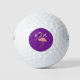 Trendy ladies personalised golf balls with monogram name initials you can personalise online and stylish pink flamingo on a pretty purple background. Designed for ladies who enjoy playing the game of golf as an executive or with friends and family.