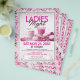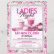 Hosting a ladies’ night or fabulous party? This fully editable flyer is the perfect way to spread the word! Update the title, date, time, location, RSVP info, and any other details with ease. Designed with a gorgeous pink floral border and sparkling pink and silver glitter accents and a diamond background, it brings instant glamour. A stylish image featuring macarons, drinks, and fruit lets guests know tasty treats are on the menu. Perfect for any event that needs a fun, feminine, pink-themed vibe.