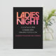 Ladies Night decorative text design for Bachelorette Party, or other girly occasion. Groovy, retro disco design. Orange, pink hue. Create your own invitation or announcement by adding your own text in EDIT mode.