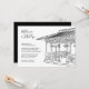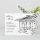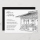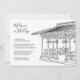 Easy to personalise wedding template. Black and white destination wedding New York City, Central Park Ladies Pavilion gazebo wedding ceremony invitation. Line art of the wedding gazebo located near the lake on the upper west side area of Central Park in the heart of NYC.