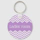 Ladies' room bathroom keychain with a purple and white chevron or zigzag pattern. Customisable, white text "Ladies' room".