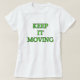 Ladies t-shirt with "Keep It Moving" on it. It expresses the need to not give up on goals.
