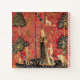 Antique tapestry woven in  Brussels around 1500 .Green floral swirls flowers with a Princess and unicorn ,digital elaboration and design by Bulgan Lumini .