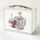 Lady drinks tea metal lunch box