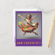 Yes Sir!! She made it!! The lady is happy because she's officially retired, so she's cheerfully jumping up and from now on she will have time for herself. She's wearing a colourful bright dress that matches her shoes. The banner on her chest reminds her that she just made it through. Customisable postcard to congratulate your loved co-worker.