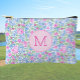 This customizable ladies accessory pouch features pink and blue hand drawn flowers with a personalizable monogram. It's a stylish pink accessory that would be a good gift for any woman to keep things from pens and pencils to golf tees and balls in.