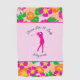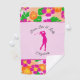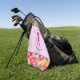 This customisable ladies golf towel features pink, orange and green tropical flowers, a pink silhouette of a lady golfer, and the advice to "drive like a lady." It's a stylish pink accessory that would be a good gift for any woman who plays golf.