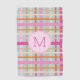This customisable ladies golf towel features pink and sage plaid with a personalizable monogram. It's a stylish pink accessory that would be a good gift for any woman who plays golf.