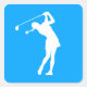 Sticker with a silhouette of a lady golfer in action. Available in different colours and on other products at my store.