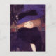 A fine art postcard with the painting by the Austrian artist Gustav Klimt (1862-1918), Lady with Hat and Feather Boa (1909). An enchanting portrait of a fashionable woman with a purple hat with a feather and black ribbon.
