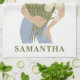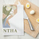 Lady Holding Bouquet Of Flowers Green Abstract Art Tea Towel