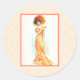 Lady in a yellow dress classic round sticker