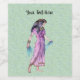 This label for a wine or sparkling wine bottle is a mix of green and blue with a lady in ancient Egyptian purple dress holding a blue scarf. Customise your text with the template.