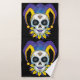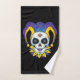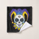 Get ready for your Mardi Gras party with this colourful Lady Jester skull with fleur de lis, jewels and heart.