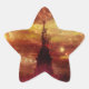 Very flashy photo edit with the Statue of Liberty from New York City, in yellow and red hues with stars shining around her.