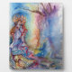 Colourful ,whimsical ,romantic, symbolist contemporary watercolor painting in soft blue,pink ,red, purple, violet, white colours for a spiritual,mystic Celtic legend by Alessandro Lumini 1989 .This cool and artistic design is also a beautiful gift for special occasions ,birthdays ,weddings,Christmas, holiday,Valentine's Day,Mardi Gras ( Fat Tuesday ) season. ----Vivien , this mysterious female gave Arthur his sword, Excalibur. She stole Lancelot when he was a child and cured him when he went mad. She may be a Celtic lake divinity in origin, perhaps of the same kind as the Gwagged Annwn - lake fairies in modern Welsh folklore. Vivien may very well have been the Lady of the Lake in the Arthurian Legends and stories. She, sometimes called Nineve, Nimue, Niniane, etc., is best known as the woman who sealed Merlin in a cave or a tree.