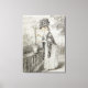 Lady on a Terrace Tending a Carnation Plant (black Canvas Print