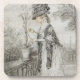 Lady on a Terrace Tending a Carnation Plant (black Coaster