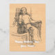 Lady pencil graphics on craft foil holiday postcard