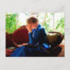 Lady reading postcard
