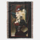Steampunk blonde all decked out in red and black with a little friend made of gears on her shoulder.