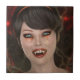 3D digital render of a beautiful fantasy lady vamp on a red sparkling background