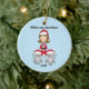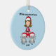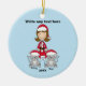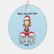 This will be a keepsake of all times! It's an adorable lady dressed in red Santa outfits and hats. It has a light blue background. There's two cats next to her. Personalise with names and a year. Check out the other family combinations and ornaments in our store. ©JW Illustrations