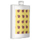 The product is a good size and came exactly as it was pictured. The lid is not attached to the flask, which could be dangerous on drunken nights... The print came out surprisingly well and looks very sharp. Would definitely recommend.