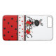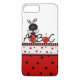 Teacher's iPhone 7 Plus case, with graphics of a cute ladybug next to cherries and graphic text ABC in between the cherries. A black, red, and white decorative polka dot pattern, on the bottom half of the case. Great looking case for any teacher and makes a great gift idea