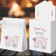 We're all a-flutter about these adorable ladybug baby shower party favour boxes. With their cute and vibrant pint ladybugs and beautiful boho rainbow, and thank you message on the front, and the theme carrying over onto the back, these party favour boxes are the perfect way to thank guests.
