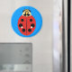 This magnet features a pretty red ladybug graphic set against a blue background.