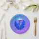 An adorable blue, turquoise and purple ladybug. She is embellished with stars and a purple blue chiffon ribbon. Set on a purple and blue glitter background.
