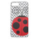 Graphic ladybug on a grey chevron patterned background. Fresh and cute design for the ladybug lover.