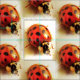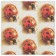 This animal nature fabric features a repeating pattern of a ladybug, (Coccinellidae) also known as the ladybird, lady cow or lady beetle, with red, orange and yellow colouring and black spots. This insect is a famous friend of the gardener who feeds on aphids and other garden pests.