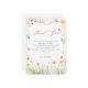 A charming baby shower thank you card featuring delicate watercolor florals, whimsical ladybugs, and soft pastel garden details. The gentle pink striped background and airy botanical design create a sweet, spring-inspired look perfect for celebrating a baby girl. Ideal for garden, floral, or ladybug-themed baby showers with a timeless and joyful aesthetic.