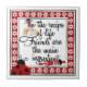 Ceramic tile with cooking theme for a special friend, with red and white flower border with ladybug accent and text for friend. A perfect friend gift for any occasion.